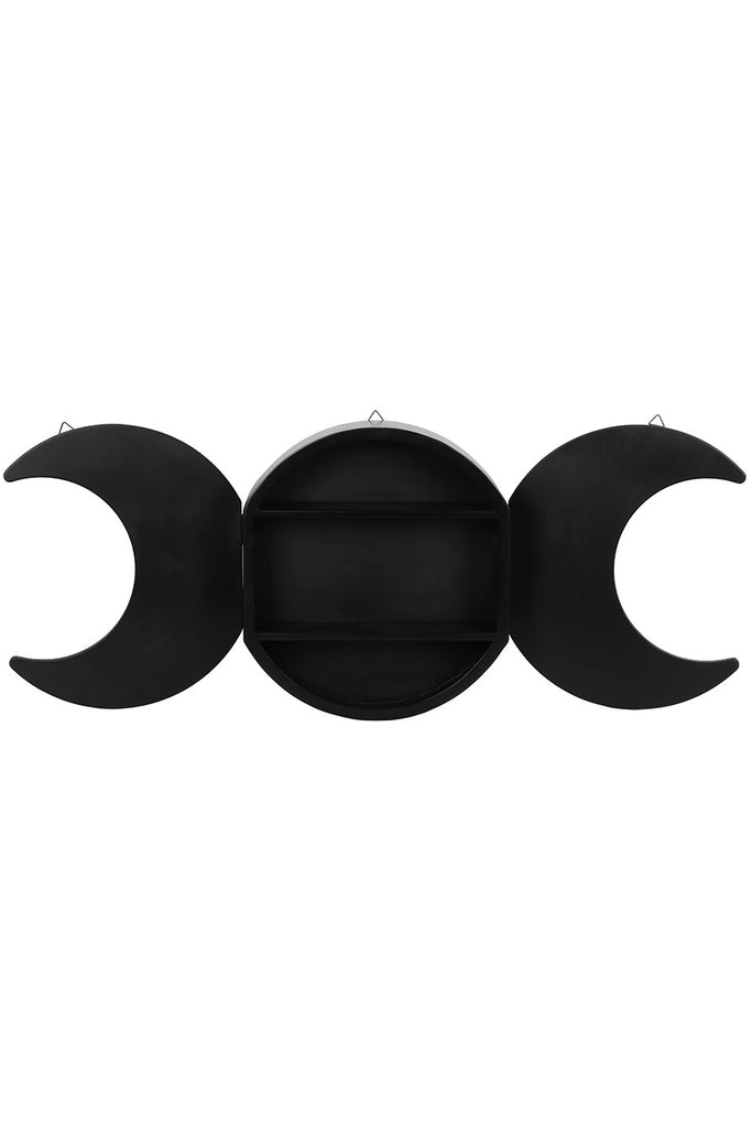 This black triple moon shelving display has the central moon as the storage area with two crescents either side which open out for display. A fantastic focal point for any room.