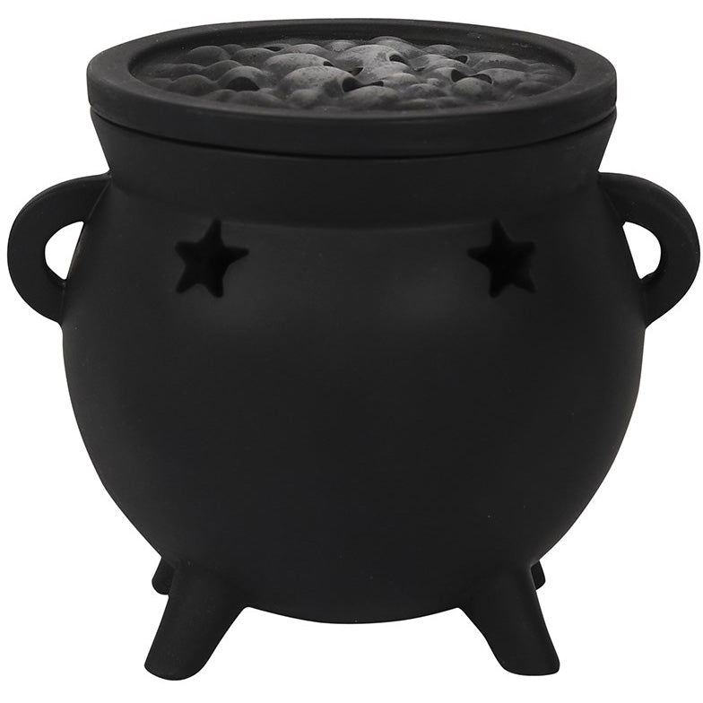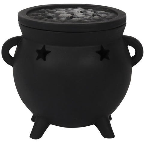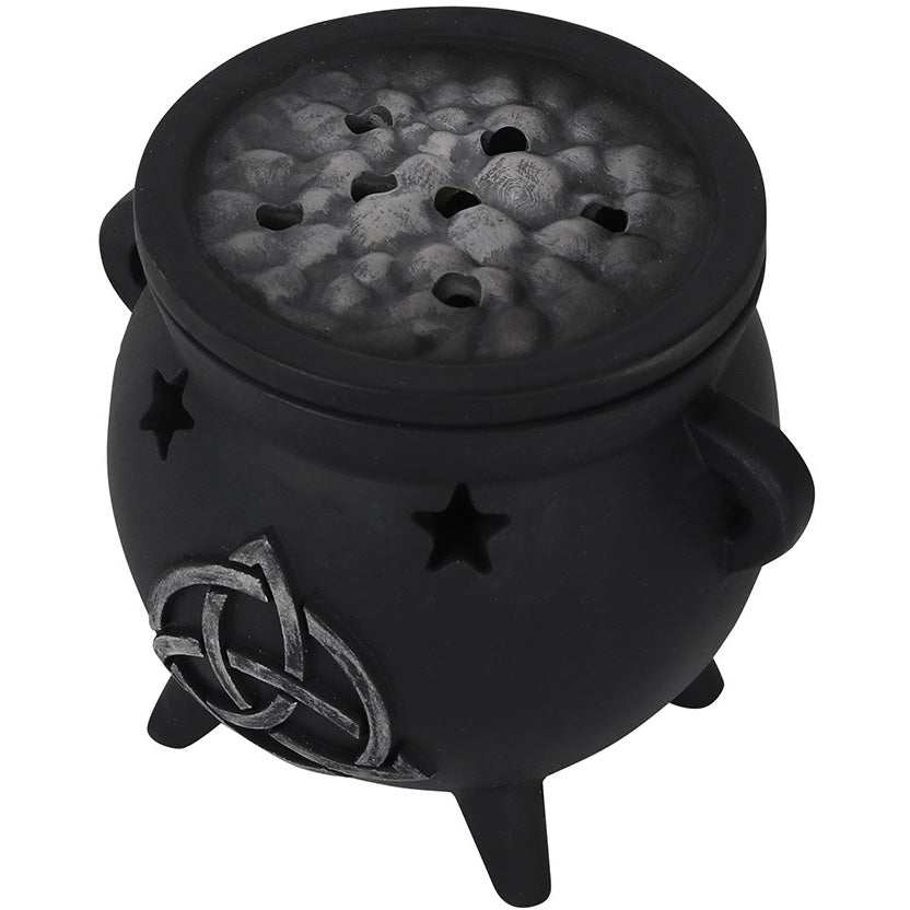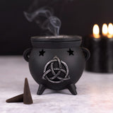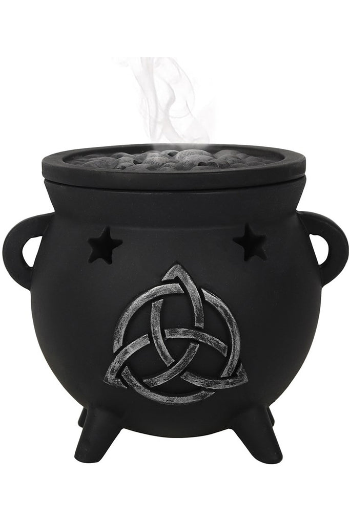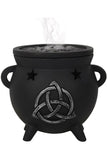 Place an incense cone inside of this resin triquetra cauldron burner and watch the smoke gently rise from the top. Accented by cutout stars and a triquetra design with a removable 'bubbling' brew top.