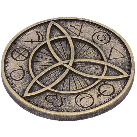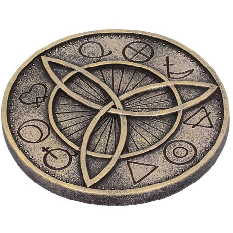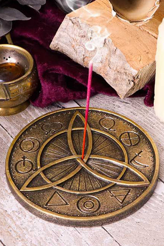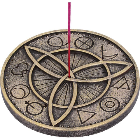 Cast in the finest resin before being expertly hand-painted, this piece lies on any flat surface. In the middle sits a triquetra with a central hole where you can place your favourite incense sticks.