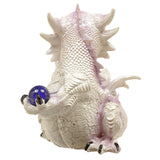 At the heart of this captivating piece lies a crystal ball, shimmering with an otherworldly light. It invites you to peer into its depths and explore the dragon's mystical dreams. Whether perched on a mantle, displayed on a bookshelf, or nestled among a collection of fantasy treasures, this figurine is sure to ignite the imagination and spark conversations.
