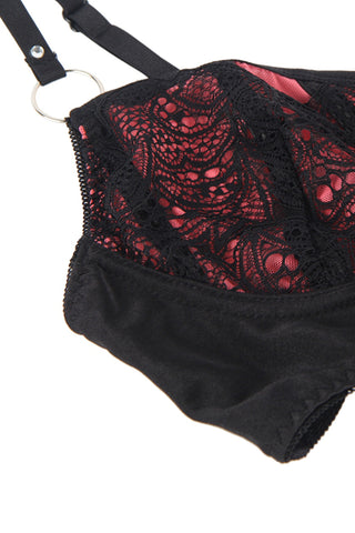 • Black Lace Details: Delicate black lace accents across the cups add a touch of intrigue and timeless design.