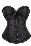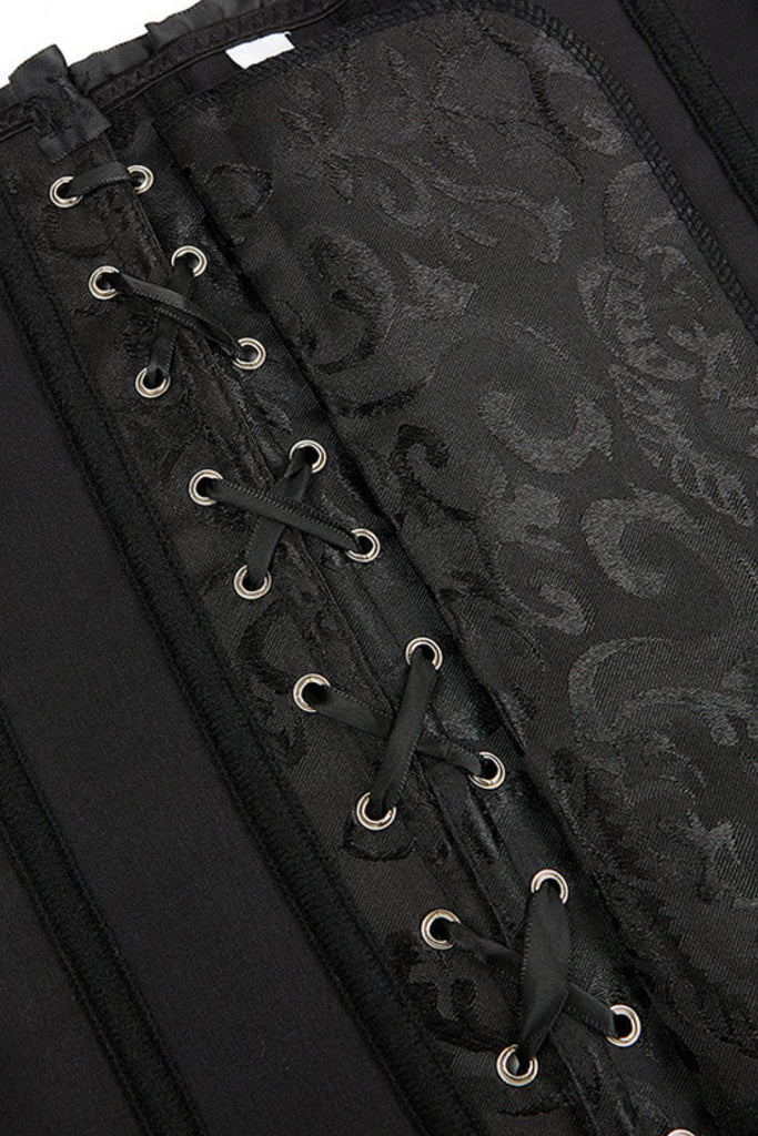 Elegant Black Brocade Corset – Vintage-Inspired Waist Cincher with Satin Trim