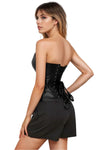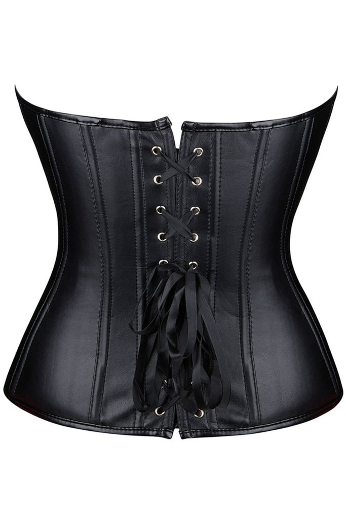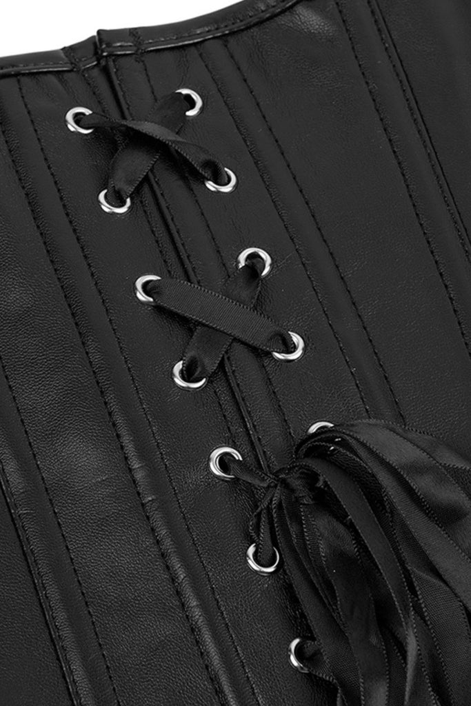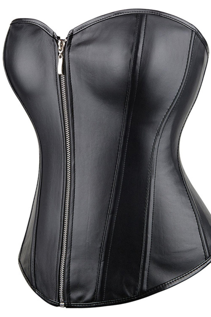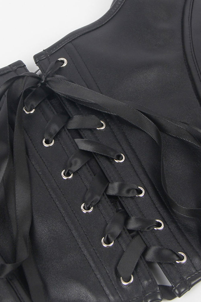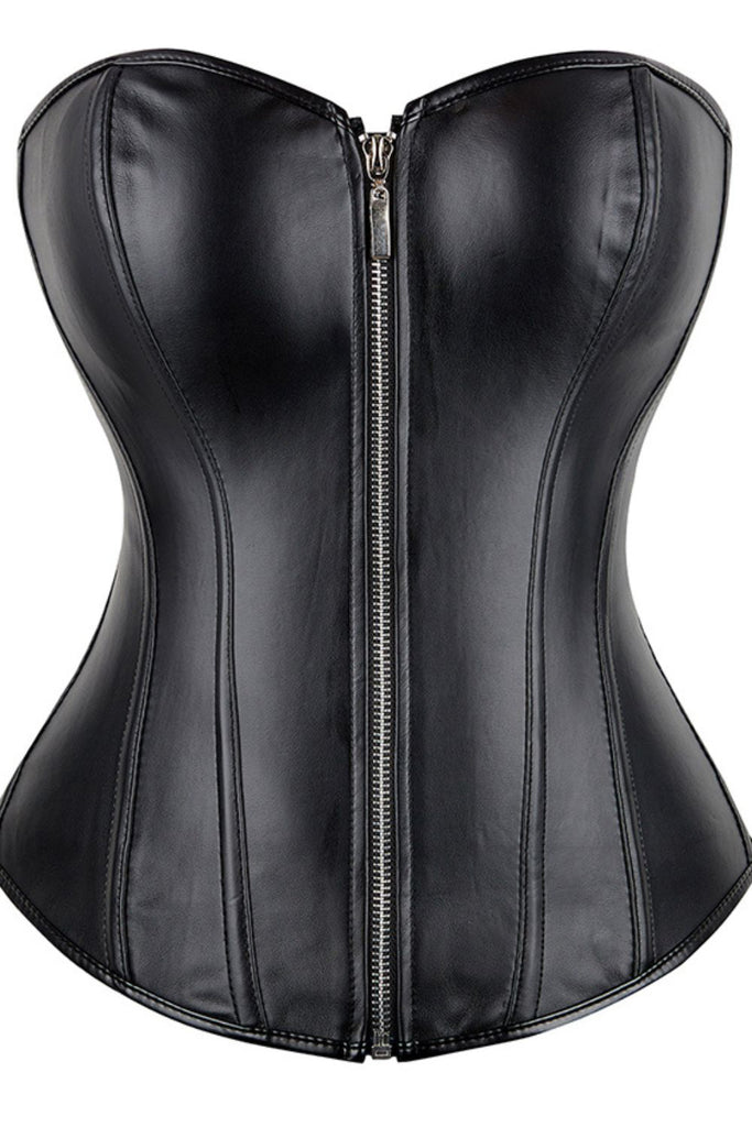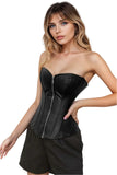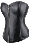 Black Leather-Look Zip-Up Corset with Adjustable Lace-Up Back