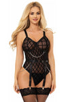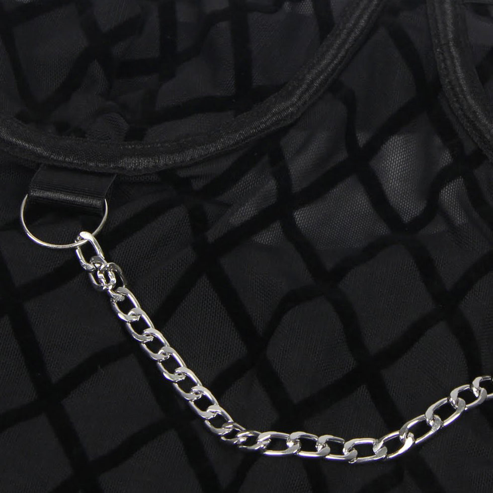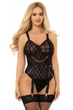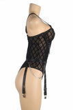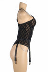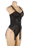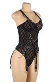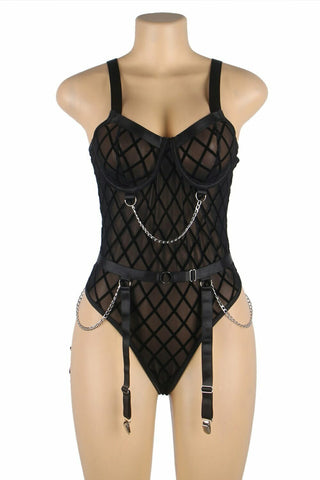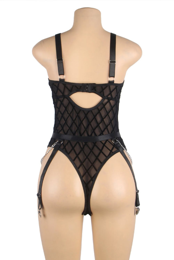 • Features: Captivating fabric design with chains, adjustable garter straps